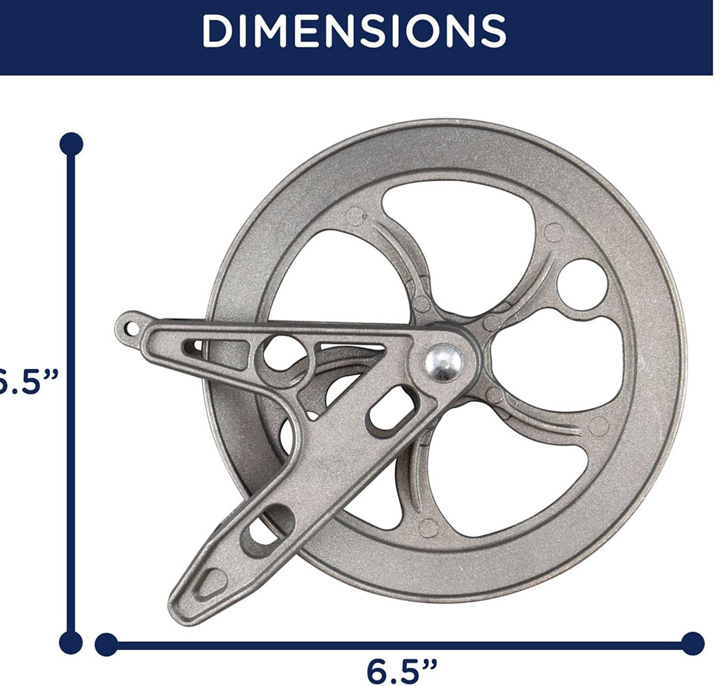The Ben-Mor Strata Outdoor Clothesline Pulley is built for strength, smooth performance, and long-lasting outdoor durability. Measuring 6.5 inches, this heavy-duty metal pulley features a ball bearing mechanism that ensures effortless rotation and reduced line wear — perfect for drying clothes, coats, blankets, and more.