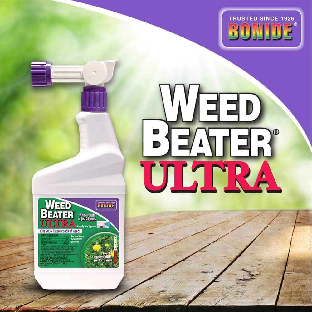 Take control of your lawn year-round with Bonide Weed Beater Ultra, the powerful and fast-acting solution for broadleaf weed control in both warm and cool weather. This 16 oz Ready-to-Spray formula attaches directly to your garden hose for easy, no-mix application — perfect for quick and effective weed management.