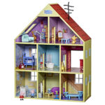 This luxurious wooden playhouse on three levels with eight rooms provides endless possibilities for children aged 3 and up to indulge in imaginative play. The set includes 29 accessories, including an opening fridge, oven, wardrobe and piano, as well as Peppa and George figures ready for new stories. Made from environmentally friendly FSC-certified wood, this playhouse will not only become a favorite toy, but also a stylish decoration for the child’s room.