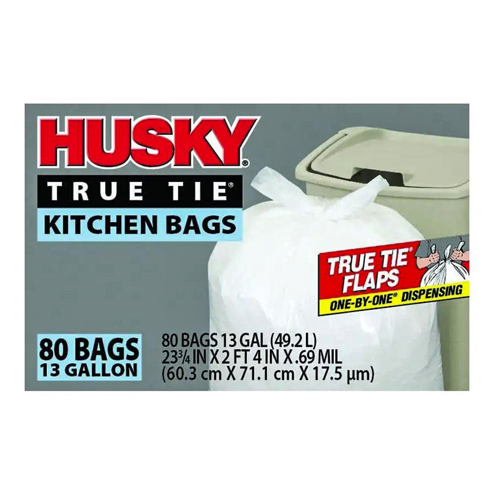These white kitchen trash bags are designed for everyday household use, offering durability and convenience.